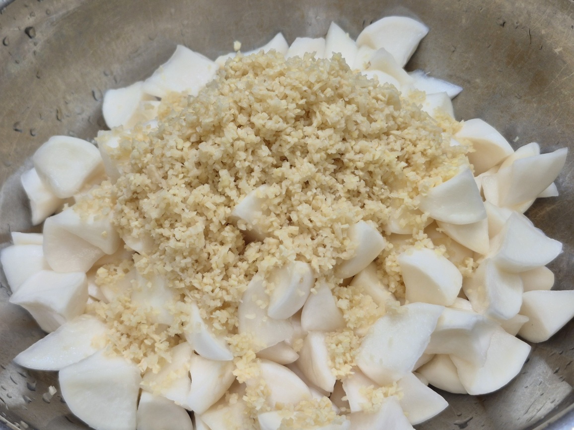水気を切ったかぶに、生姜のみじん切り+すっぱい梅干し+はちみつ梅干し・・・を和えて出来上がり。